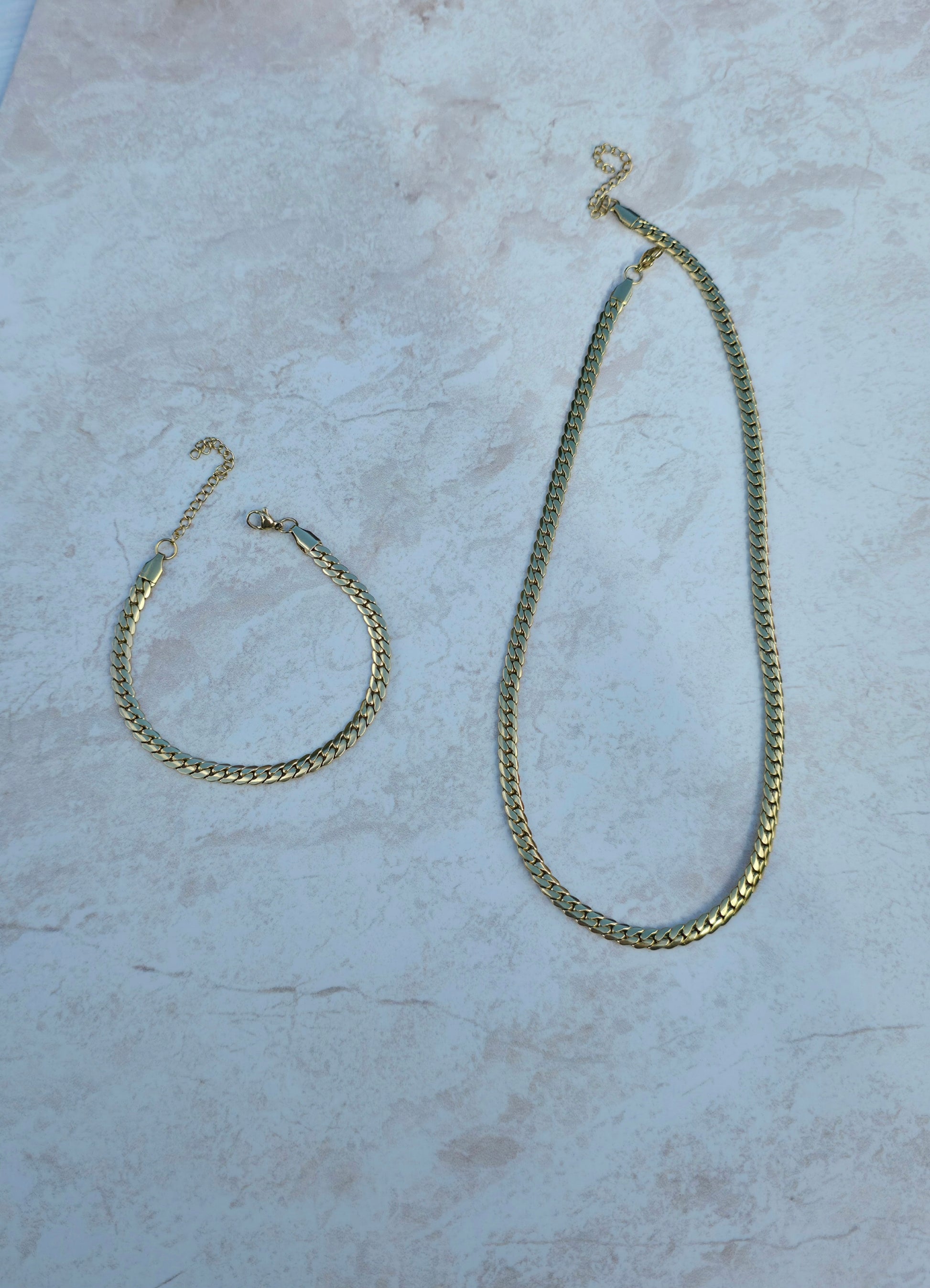 ๐ย 18 K gold plated stainless steel minimalistic set, flat cuban chain.ย