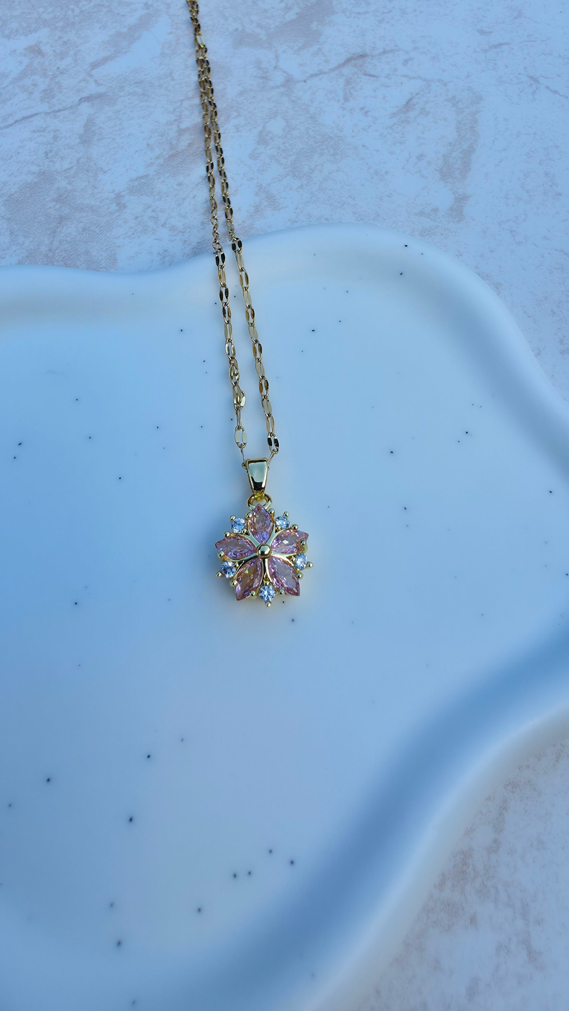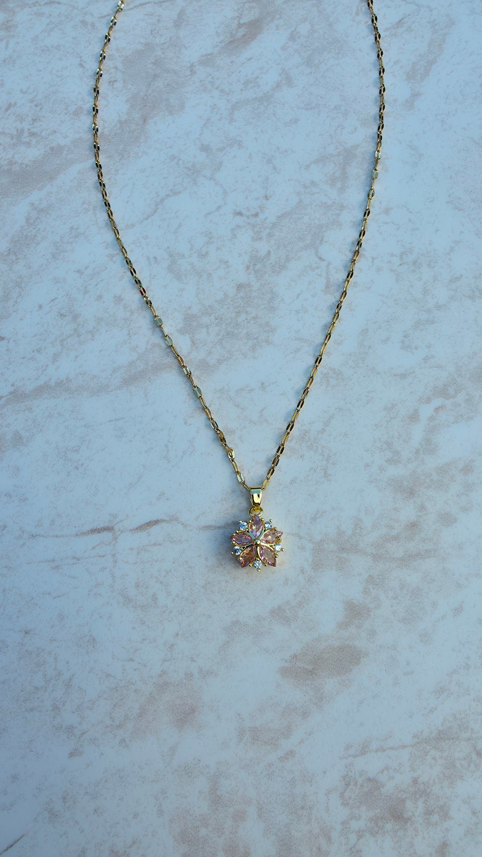 🎀 Dainty 18 K gold plated stainless steel necklace with a gorgeous sparkly pink flower pendant.Â