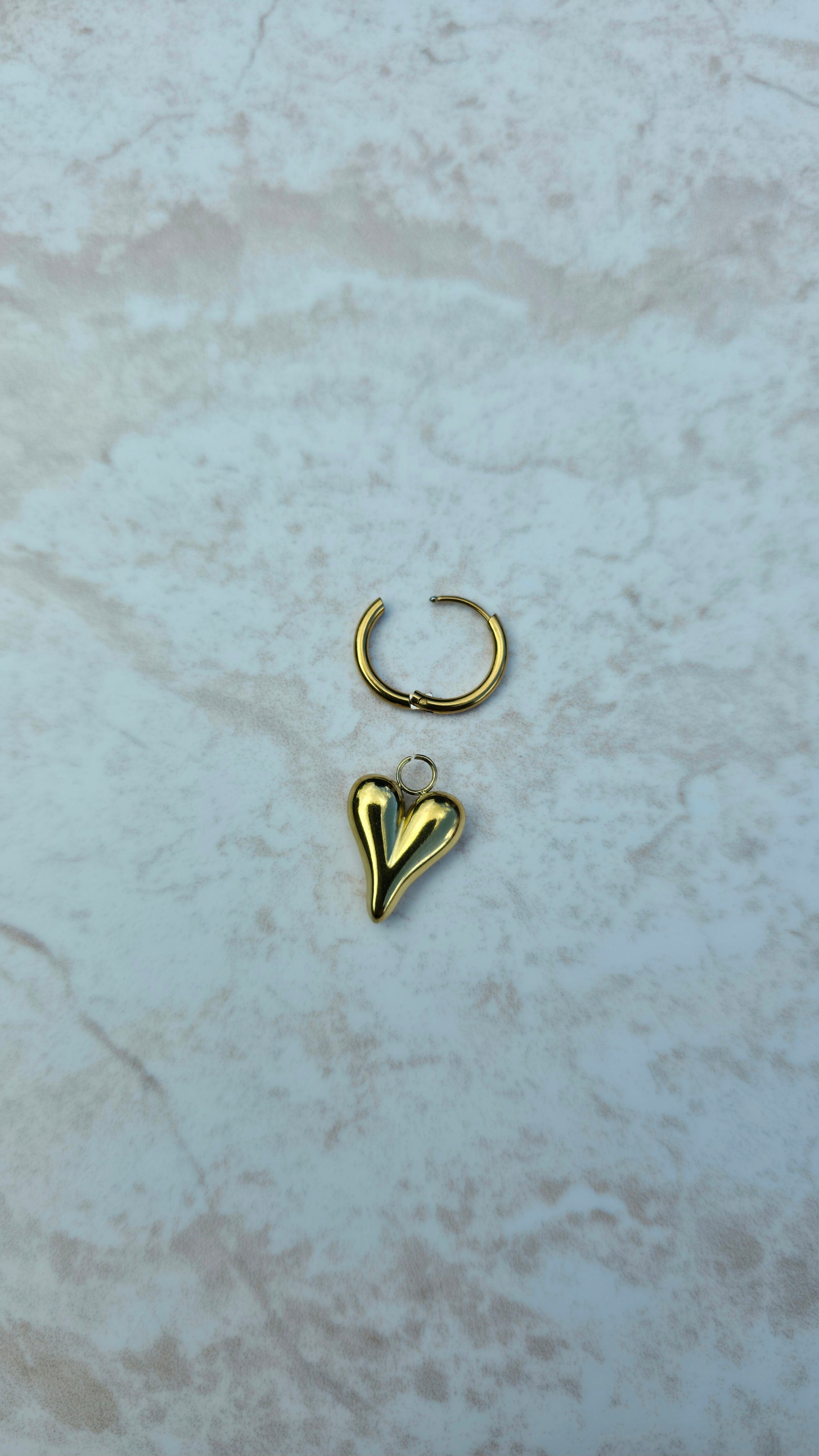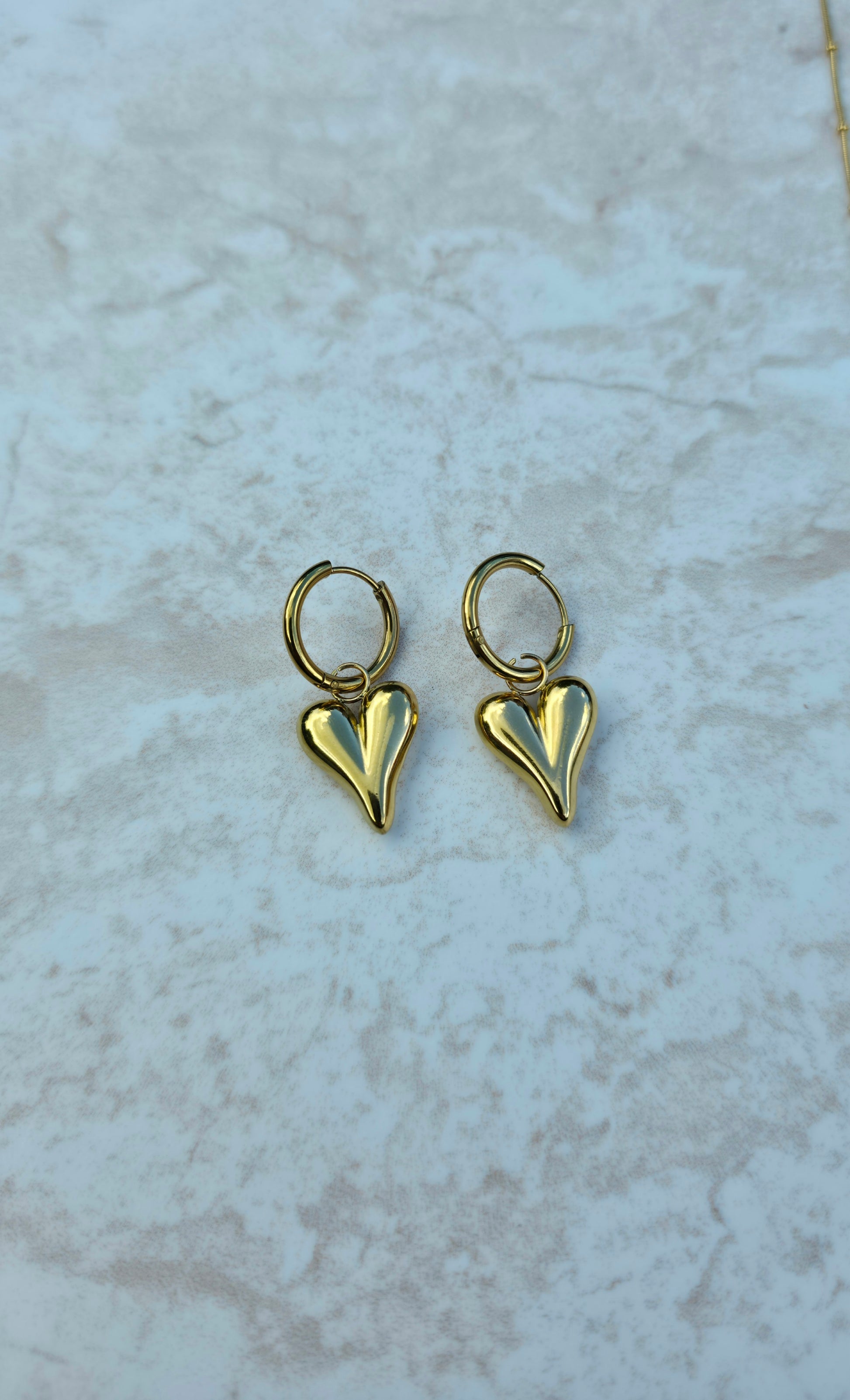 🎀 Gold plated stainless steel set with polished chunky hearts charms.